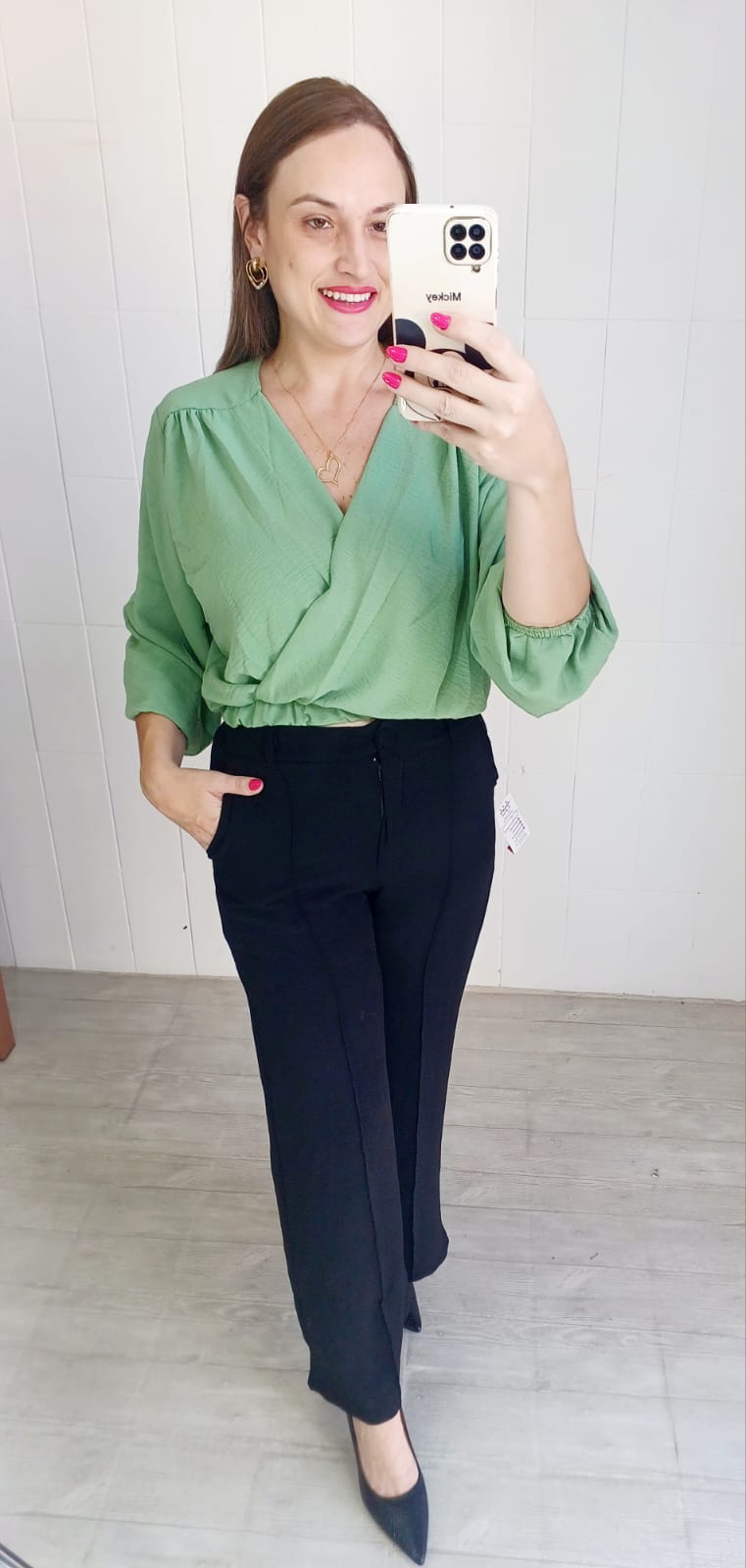 A blusa Duna é um tecido leve, com caimento soltinho e textura delicada.Possui decote em V, que valoriza o colo e traz um toque elegante.As mangas são levemente bufantes, com elastico na barra, conferindo charme e conforto e deixa o modelo mais ajustado na cintura.