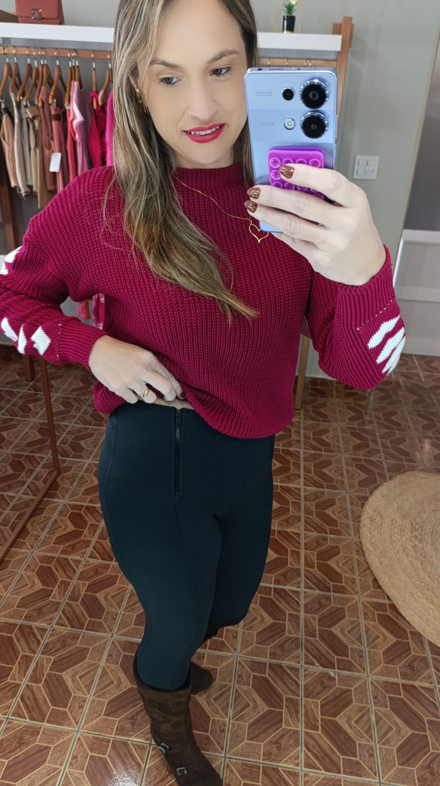 Calça Montaria confeccionado em tecido encorpado e estruturado, que proporciona ajuste ao corpo e valoriza a silhueta.